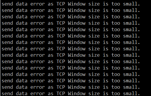 运行 nonblocking_client,运行一段时间后,由于对端和本端的 TCP 窗口已满,数据发不出去了,但是 send 函数不会阻塞,而是立即返回,返回值是 -1(Windows 系统上 返回 SOCKET_ERROR,这个宏的值也是 -1),此时得到错误码是 EWOULDBLOCK。执行结果如下: