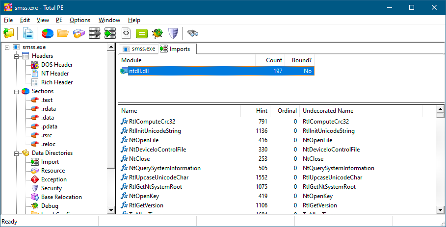 图3-5:Smss.exe的导入依赖