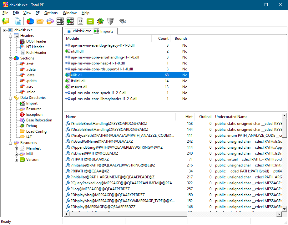图3-6:Chkdsk.exe的导入依赖