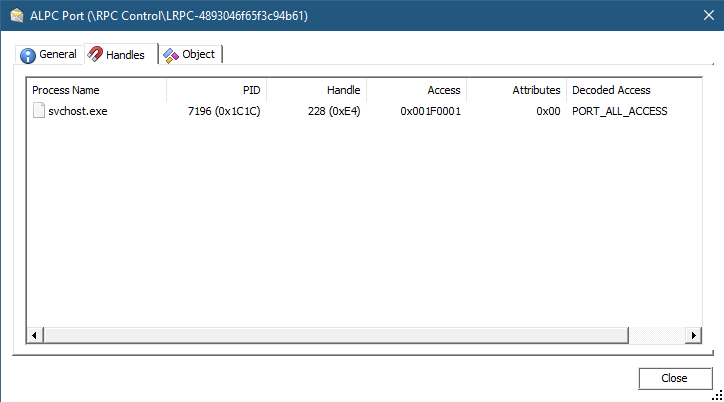 使用 Process Explorer 和 Object Explorer,可以检查特定进程中的 ALPC 端口句柄(图 10-3)。