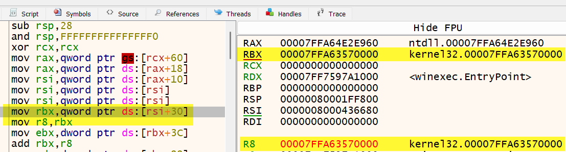 让我们从定位kernel32基地址开始。这实际上非常简单!