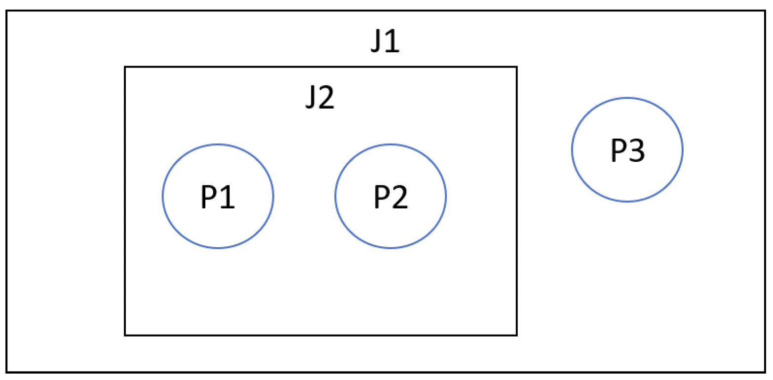 - 将进程P2分配到J2,进程P2现在受作业J1和J2的影响。